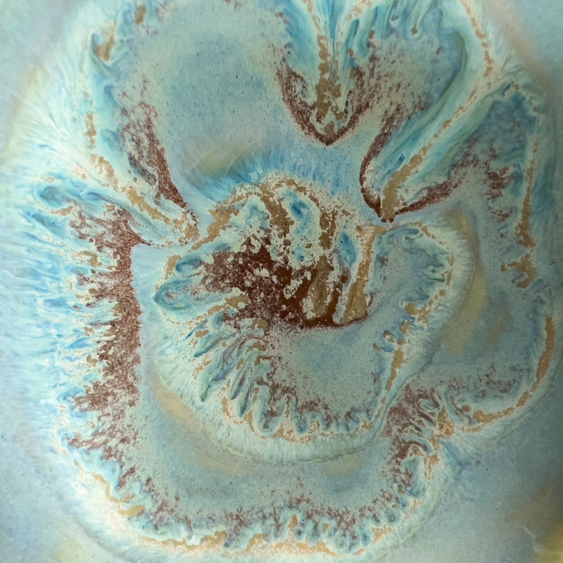 Trinket bowl set of 3, green and copper feathered glaze